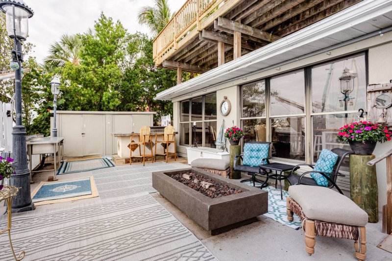 Open first floor plan with Waterview throughout. Waterfront deck, gas grill, gas fire pit, and table/chairs. Beautiful boats and dolphins passing by are a treat! Seconds from the sands of the Gulf of Mexico just across the street.